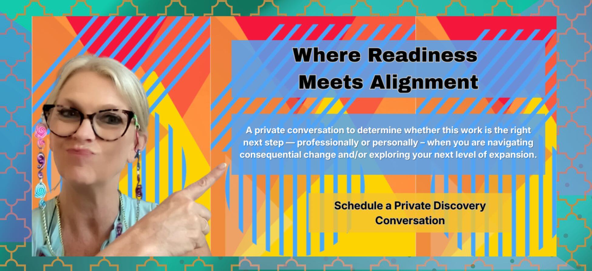 This is a private alignment conversation where you will have the opportunity to share important details with me and ask any questions that you may have about the coaching process.